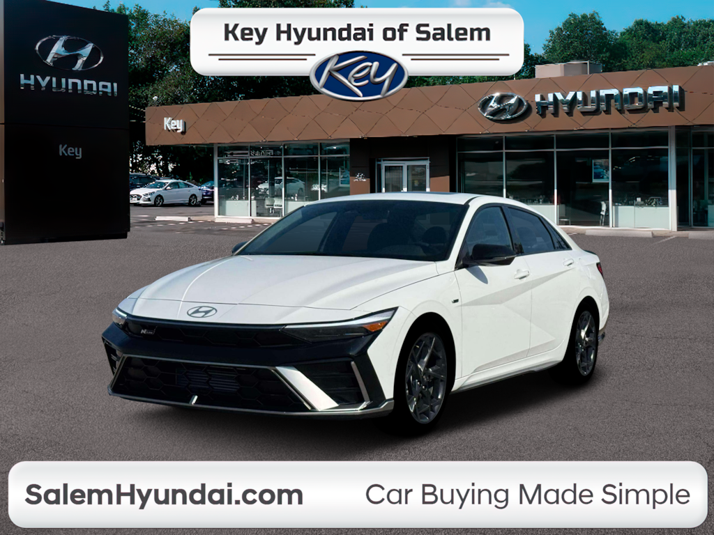 "2026 Hyundai Elantra N Line N Line WhiteThis Elantra N Line is nicely equipped with Option Group 01 18""x 7.5J Alloy Wheels 4-Wheel Disc Brakes 8 Speakers ABS brakes Air Conditioning Alloy wheels AM/FM radio: SiriusXM Apple CarPlay & Android Auto Auto High-beam Headlights Automatic temperature control Brake assist Bumpers: body-color Cargo Net Cargo Tray Carpeted Floor Mats Center Console Tray Combination Cloth and Leatherette Seating Surfaces Delay-off headlights Driver door bin Driver vanity mirror Dual front impact airbags Dual front side impact airbags Electronic Stability Control Emergency communication system: None Exterior Parking Camera Rear First Aid Kit Four wheel independent suspension Front anti-roll bar Front Bucket Seats Front Center Armrest Front dual zone A/C Front reading lights Fully automatic headlights Heated door mirrors Heated front seats Heated Front Sport Bucket Seats Illuminated entry Leather Shift Knob Leather steering wheel Low tire pressure warning Navigation System Occupant sensing airbag Outside temperature display Overhead airbag Overhead console Panic alarm Passenger door bin Passenger vanity mirror Power door mirrors Power driver seat Power moonroof Power steering Power windows Radio: AM/FM/HD/SiriusXM Display Audio Rear anti-roll bar Rear Bumper Applique Rear seat center armrest Rear side impact airbag Rear window defroster Remote keyless entry Security system Speed control Speed-sensing steering Split folding rear seat Spoiler Sport steering wheel Steering wheel mounted audio controls Tachometer Telescoping steering wheel Tilt steering wheel Traction control Trip computer Turn signal indicator mirrors and Variably intermittent wipers.Call 603-841-3099 to schedule your contact free test drive today!"